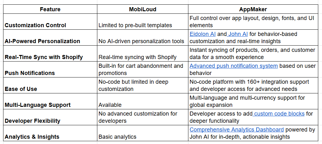 While MobiLoud is a popular option for converting Shopify stores into mobile apps, it has limitations in deep customization and AI-driven personalization. For businesses seeking a truly unique mobile app that aligns with their brand identity, AppMaker offers a more flexible solution.