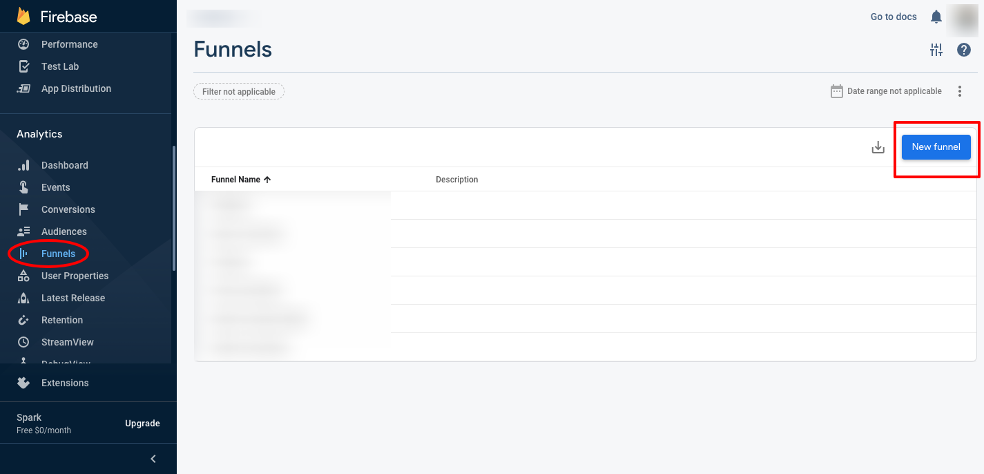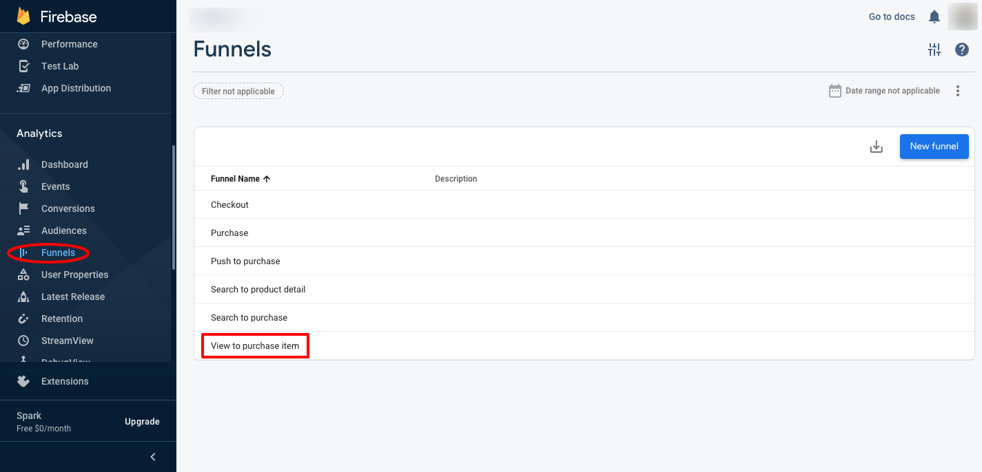 Step 1: Go to the Funnels section in the Analytics tab of Firebase and click on New Funnel.