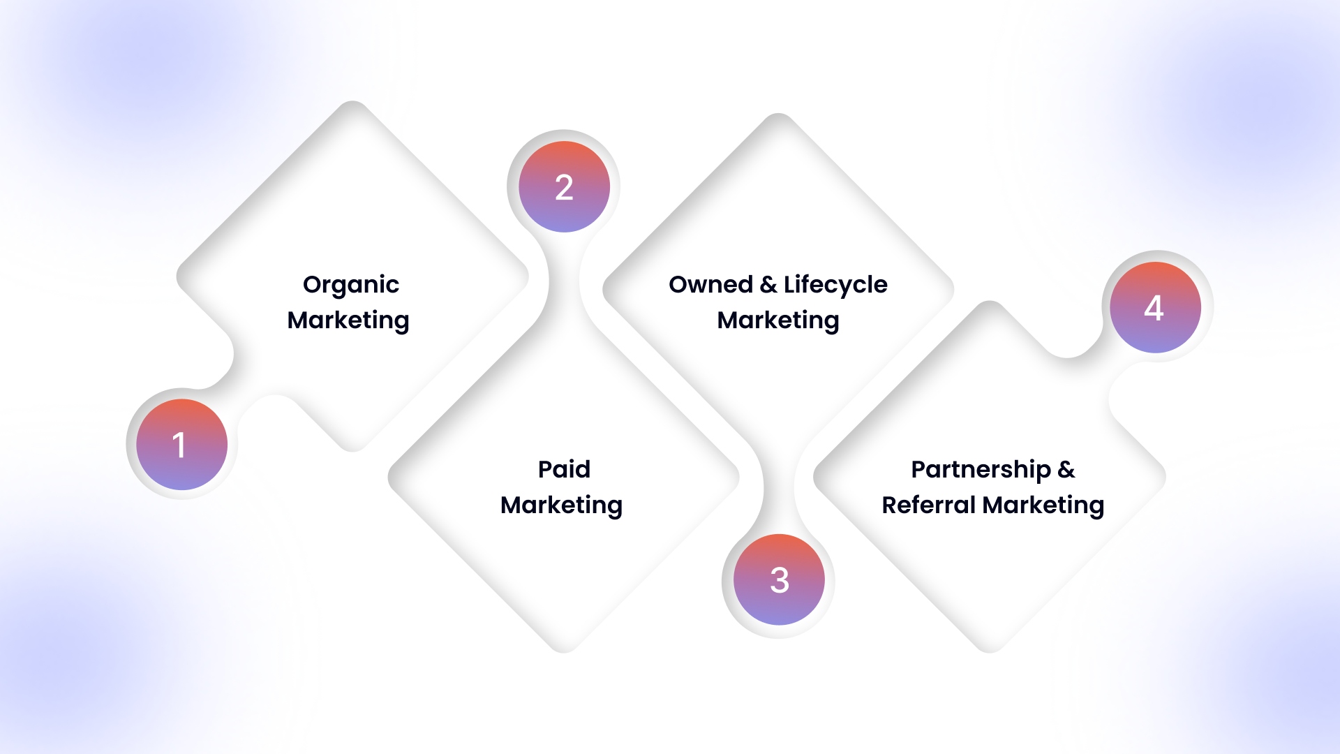- Effective growth combines organic, paid, lifecycle, and partnership/referral campaigns, each serving a distinct role in user engagement and long-term growth.
