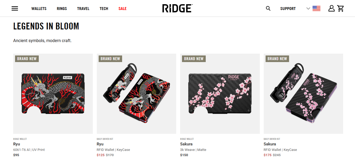 Ridge is known for minimalist wallets, but their mobile execution is what deserves attention. They treat mobile like a high-conversion environment.