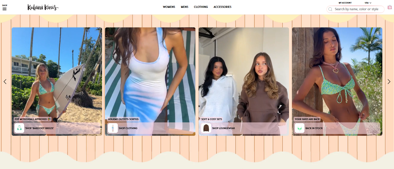 Kulani Kinis understands that most of their traffic comes from phones, especially from Instagram and TikTok. So they have built their store around that reality instead of adapting desktop layouts.