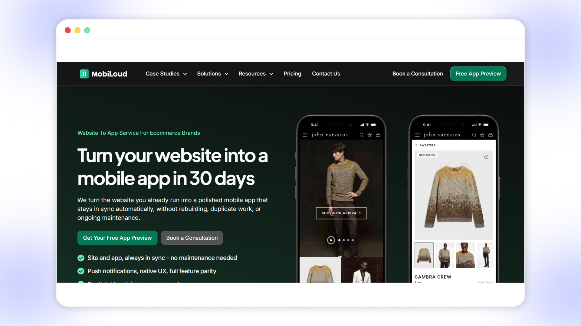 MobiLoud turns a Shopify store into fully native iOS and Android apps that stay in sync with your website without separate rebuilds or duplicated workflows. Every update you make on Shopify, products, collections, pages, or integrations automatically appears in the mobile app. It provides reliable push messaging, customizable navigation, and a managed build and launch service for merchants that need a hands‑off but powerful app solution.