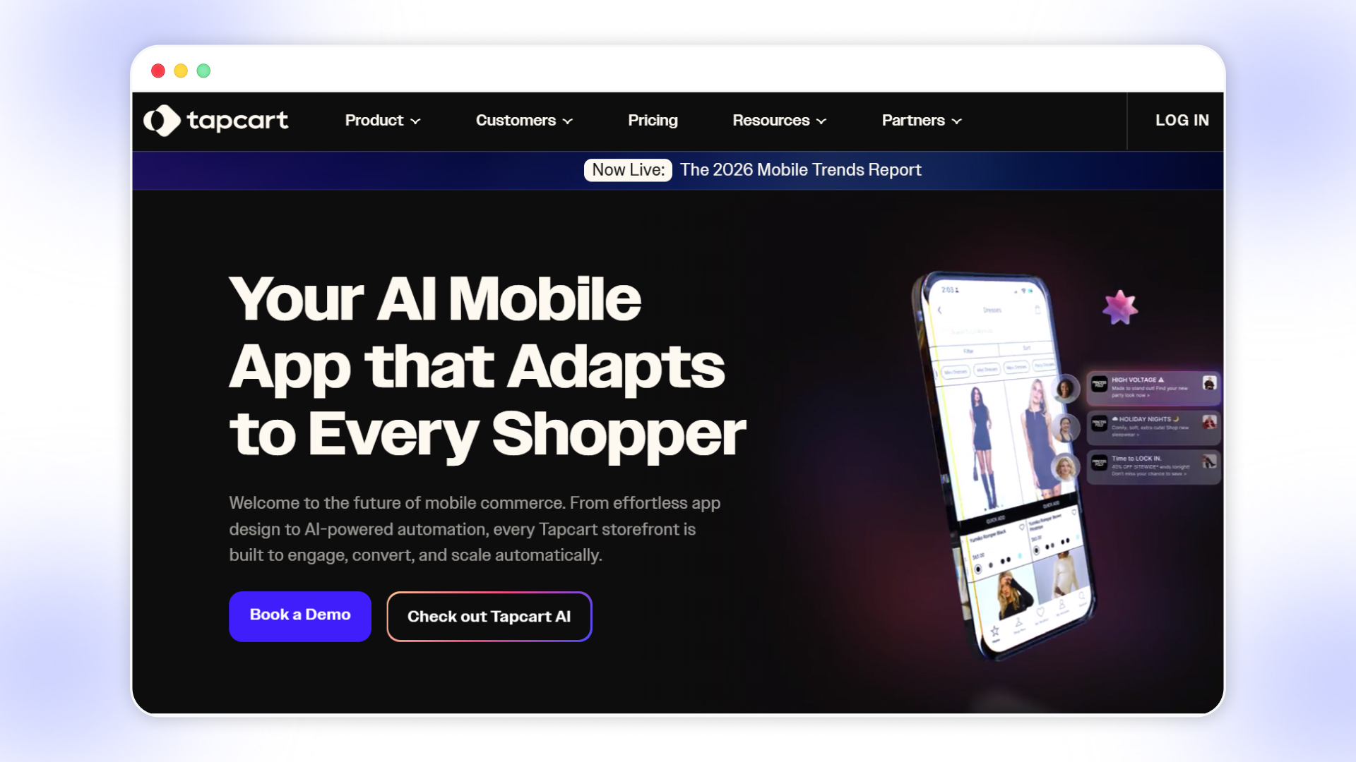 Tapcart is a mobile app platform built specifically for Shopify that helps merchants create fully branded iOS and Android shopping apps without developer work. It syncs your Shopify catalog, customer data, and checkout in real time and pairs an intuitive design studio with purpose‑built engagement tools. Tapcart is a compelling choice for brands that want strong mobile performance and personalized experiences.