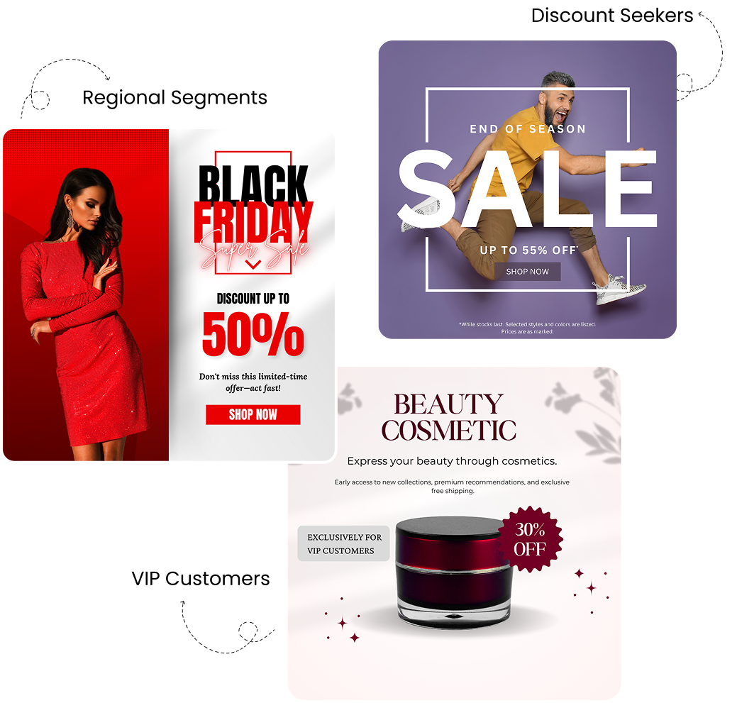 Highlight festival campaigns (e.g., "Diwali Specials") or seasonal sales.